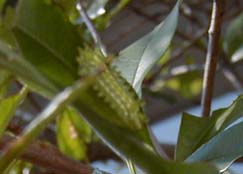 ハバチの仲間 透き通った青虫です。葉にぽつぽつと